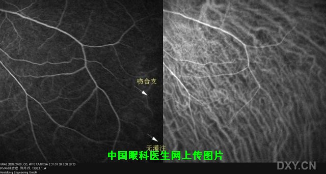 5、周边部视网膜血管形成锯齿状吻合支,出现无灌注区