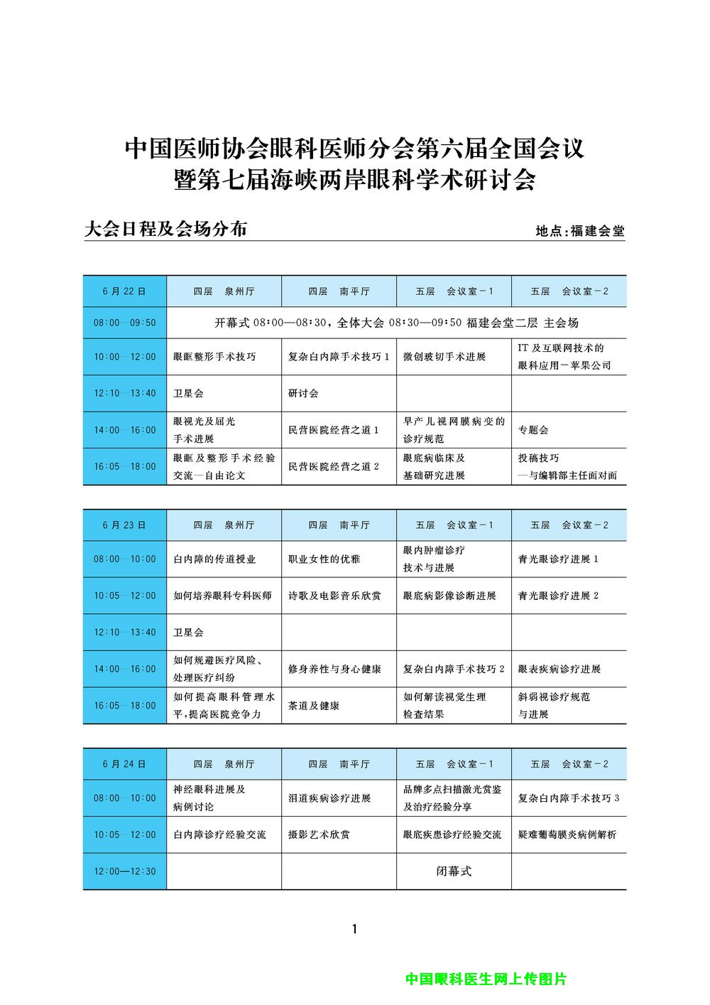 [组图]全国眼科医师大会日程安排(最新版!)           ★★★