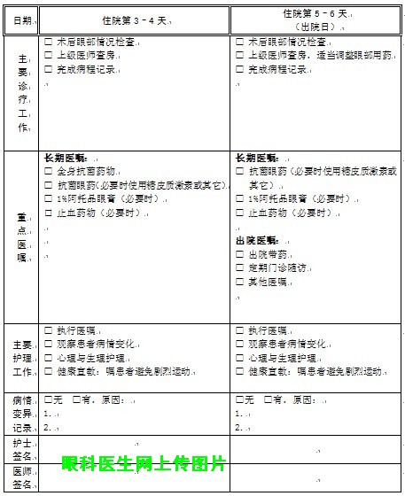 2.若眼部CT显示有明确球内异物,合并眼内容物脱出、晶体皮质外溢或术后炎症反应进行性加重,有眼内炎趋势,退出此途径,进入相关途径。