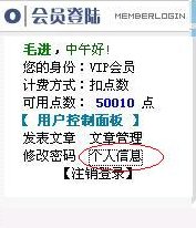 登录中国眼科医生网(http://www.oculist.net)后,点击在页面的左上角的用户控制面板中的个人信息(如图所示)
