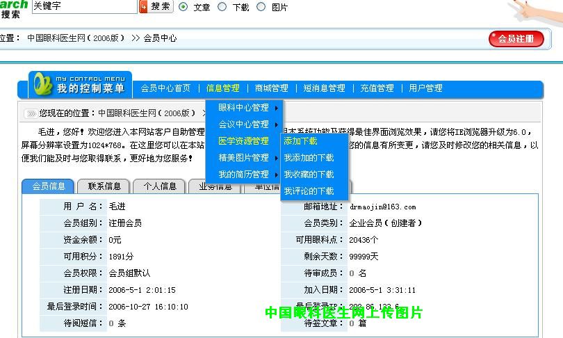 2、进入用户控制面版http://www.oculist.net/User/Index.asp