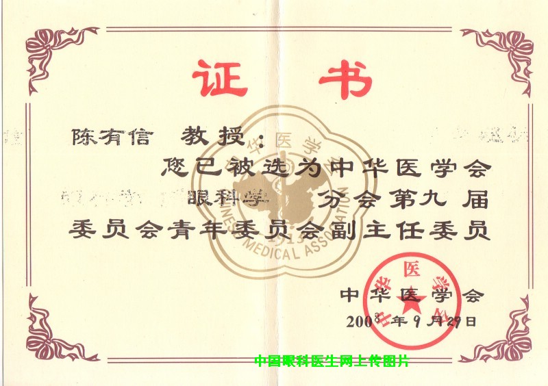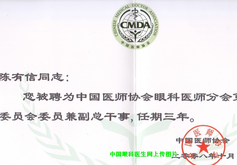 副主任当选为中华医学会眼科分会青年委员会副主任委员。医师协会副总干事