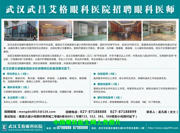 武汉武昌艾格眼科医院本轮招聘岗位数量及要求如下: