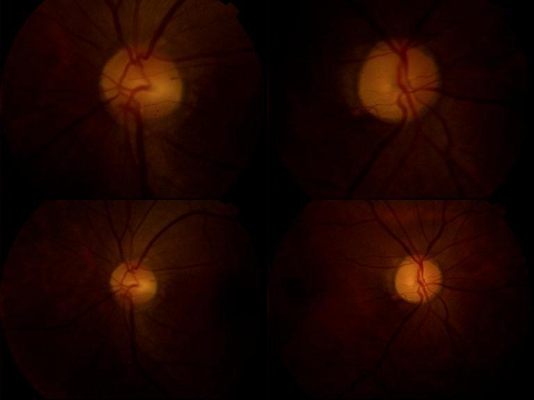 请大家根据眼底照相图提出自己的初步看法和进一步的检查