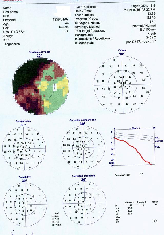 下次患者复诊是请复诊大夫再好好检查一下瞳孔的问题。 这种偏盲性瞳孔强直一般不容易检查出来,需要特别细的裂隙光带仔细检查,因此临床上常常容易被忽略。 |