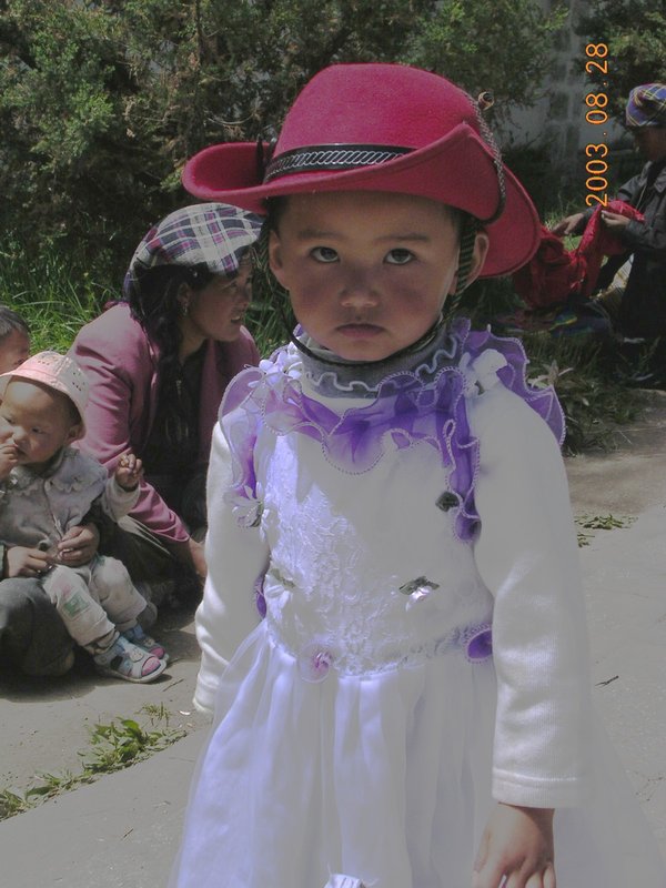 打车不到10分钟我们就到了罗布林卡公园,因为是雪顿节,门票从3元暴涨到60元。罗布林卡是西藏唯一饲养动物的公园,曾经是达赖的夏宫,也是达赖密谋叛乱独立的地方。因为是雪顿节,公园内很多藏族同胞在"过林卡"(相当于我们的野餐聚会),白宫(高级喇嘛休息的地方)外也有藏戏表演,服装和形式都比较特别,戴着面具就象日本的歌剧。参观了达赖喇嘛的夏宫(格桑颇章),是一座二层小楼,是西藏和平解放后修的。布置还是传统的西藏风格,宗教气氛很浓,还有达赖喇嘛讲经的宝座,旁边是很多宗教故事的唐卡(壁画)。很多人都在五体投地地顶礼膜拜。同行的八个人,除了我之外,都用西藏传统的五体投地的方式膜拜了一下。