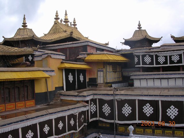 今天医院安排我们游览布达拉宫,现在是旅游旺季,布达拉宫每天限客850名,所以门票很难买。幸好医院安排了布达拉宫的工作人员帮我们补票。 上午8点我们出发打的到了布达拉宫后门,通过和他们的值班处长联系,我们买到了门票进了布达拉宫。布达拉宫始建于公元七世纪松赞干布时期。十七世纪五世达赖喇嘛时期重建后,成为历代达赖喇嘛的住地和政教合一的中心。主体建筑分为白宫和红宫,主楼十三层,高115.703米,由寝宫、佛殿、灵塔殿、僧舍等组成。 进入布达拉宫前有一个厕所,为了避免在参观时出现情况,我准备先去放松一下。我刚走进厕所,一股浓重的类似酥油味的气味迎面而来,使我立即恶心不已,几乎呕吐。我实在不能坚持,只好退出,考虑再三,我捏着鼻子冲进了厕所解决问题并很快退出@#!$%^&*。 进入布达拉宫就不能随便照相或摄影,里面的光线很暗以保护壁画和装饰品。个别地方可以照相但价格是我们根本无法接受(60-90元每张)。我们决定关了数码相机的闪光来偷拍某些有专门照明的东东。布达拉宫里面的装饰非常豪华,很多佛塔或灵塔都是由黄金加上宝石做成,特别是五世达赖喇嘛的灵塔最为豪华,用了3721公斤的黄金和数万颗宝石做成,他的肉身已经保持在灵塔内数百年,但是从来没有人能够看到他的真身。我们跟随一个旅行团的导游听她的解说,在走马观花中能了解一些历史和传说。布达拉宫中也有松赞干布和他两个妻子(尼泊尔公主和文成公主)的佛殿,听导游解说,松赞干布王的两个外族妻子都没有留下子嗣,触摸殿内一个锅沿可以成为好的厨师或为打牌带来好的手气。可惜我对两者都没有兴趣,所以就懒得排队去触摸了。在参观布达拉宫的珍宝馆时我们的数码相机有了用武之地,偷偷拍了一些珍宝的照片,虽然不一定有什么用处,但这种偷拍带来的刺激反而让我们乐不疲此。布达拉宫的收藏真是非常丰富,佛经、合金的佛器和一些大型的装饰物件,例如黄金打造的天堂和地狱景象都是无价之宝。另一个给我留下深刻印象的是布达拉宫佛像前的世界各国的货币展示(提示大家捐钱?@#%^$&*^)和喇嘛们用笤帚和麻袋装垃圾一样的纸币和每个宫殿中值守的喇嘛都在用手机,甚至还在发短信(避免铃声打扰佛像??@@@……)。布达拉宫的红宫的参观结束前化十快钱来到布达拉宫红宫的顶端可以一览拉萨市容和拍照。白宫的参观更是简单,看了一个僧侣们休息的地方就结束了。整个参观的行程大约3小时,出了布达拉宫,布达拉宫门口的小贩热情的推销各种防止的纪念品,开价80元的项链可以侃价到10元,开价750元的铜佛像可以还价到数十元!!@@@……
