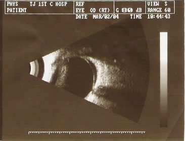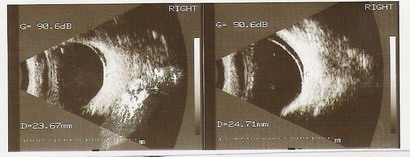 2004年3月2日B超:右眼视网膜脱离(鼻上)
