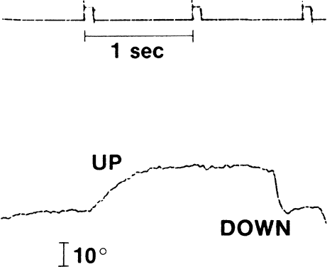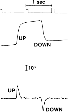 Single-cell recordings from the neurons in the oculomotor nuclei of monkeys43 and electromyography of human extraocular muscles44 demonstrate that an increase in innervation in a pulse-step pattern reaches