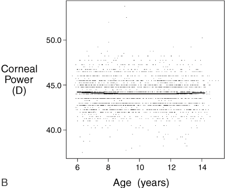 *Each cell contain the mean = standard deviation for the component age, and gender indicated. Reprinted from Zadnik K, Manny RE, Yu JA, et al for the CLEERE Study Group: Ocular component data in schoolchildren as a function of age and gender. Optom Vis Sci 80:226, 2003, with permission.