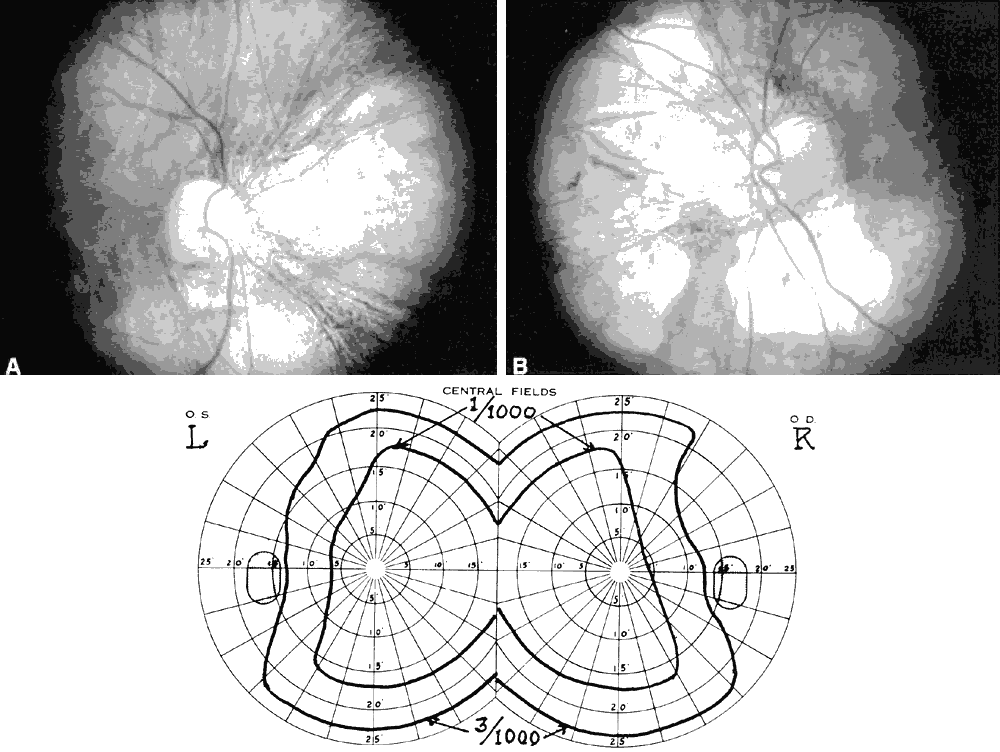 often develops in many myopic eyes. High grades of myopia, in particular, can produce a number of unusual field defects. Concentric contraction occurs occasionally and is thought to be caused by a generalized depression of retinal sensitivity. This field change has been found to occur most often with elevated intraocular pressures. Comet and ring-shaped scotomata somewhat like those seen in glaucoma also are encountered in pathologic myopia. These defects may arise from the sharp, sloping walls of a posterior staphyloma. The sentient retinal elements in this situation are not aligned properly with the pupillary center. A resultant Stiles-Crawford effect with reduced retinal sensitivity results. Hemianopic and quadrantic defects also occur in myopic eyes with posterior staphyloma. These defects are of importance as they may be mistaken as evidence of neurologic disease in those patients who have not had a careful fundus examination. The most common of these defects is bitemporal hemianopsia. This defect is produced by bilateral nasal staphylomas that arise at the optic nerves and involve the fundus areas nasal to it. Most frequently, these staphylomas are inferonasal. The resultant defect is initially relative and is because of ectasia of the affected fundus area. With the subsequent development of chorioretinal degeneration, the visual field will show corresponding absolute defects (Fig. 9). Relative field defects can be eliminated by retesting the affected field with increased minus power to correct for staphyloma depth. CONTACT LENSES The optical benefits of contact lenses over spectacle correction in high myopia include image magnification, the elimination of prismatic object displacement with its attendant “barrel” distortion, and the elimination of image degradation caused by the spherical aberration of spectacle lenses with off-axis viewing (coma).10 As we have observed earlier, when the optical correction in myopia is brought closer tothe corneal surface, image minification decreases. With a contact lens at the corneal surface, image minification is reduced to a minimum. The prismatic effects and spherical aberration of spectacle correctionare eliminated because the optical axis of the contact lens moves with the visual axis of the eye. As noted earlier, the increase in accommodation and convergence effort with the use of contact lenses must be taken into consideration when dispensing lenses. Contact lens technology has advanced significantly in the past decade. Rigid polymethylmeth-acrylate contact lenses have been virtually replaced with daily and extended-wear rigid gas-permeable lenses. Better quality daily and extended-wear toric soft contact lenses are in turn replacing rigid gas-permeable lenses. Many patients who were pre-vious polymethylmethacrylate or rigid gas-permeable contact lens failures can now wear soft contact lenses comfortably. Custom toric soft lenses can correct very high degrees of myopia (up to 20 D at the corneal surface) and astigmatism (up to 10 D at the corneal surface), making comfortable contact lens correction a possibility for most patients. Sufficient patient motivation and normal external ocular anatomy, however, are still essential for successful contact lens wear. Fitting myopes and other patients with high degrees of refractive error, including astigmatism, can be very challenging but also quite rewarding. Refer to a detailed exposition of this subject elsewhere in this text. REFRACTIVE SURGERY The correction of myopia by photorefractive keratoplasty, laser in situ keratomileusis, intrastromal corneal ring implants,11 phakic intraocular lens implants,12 and even clear lens extraction for very high myopia13 have been gaining acceptance among surgeons and patients as the risks for these procedures decrease. With a good surgical outcome and the improvements in medical technology allowing for high-quality optical devices, these methods of optical correction of myopia are superior to spectacle correction by their reduction or elimination of lens aberrations and by their increase in image size relative to spectacle correction. Obviously, the benefits of these methods of optical correction must be weighed against the risks, the downside of which can be considerable. |