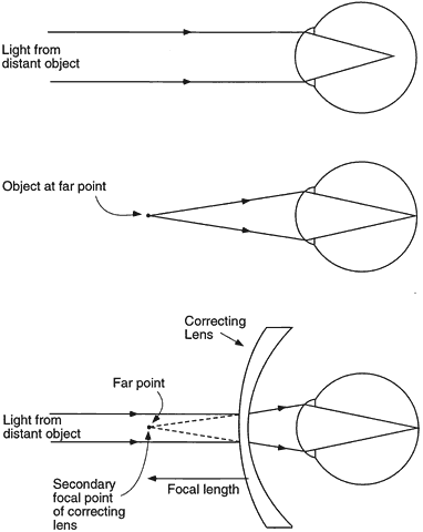 light from the object forms a focused image on the retina is the patient's far point (punctum remotum). Alternatively, if the object is to remain far away, at