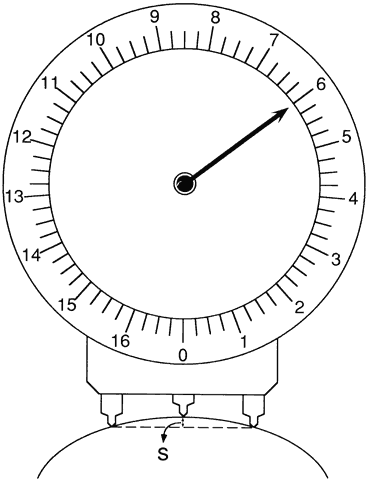 Lens surface powers are measured using a lens clock or lens measure (Fig. 8). When placed against a curved surface, the middle of the three lens clock