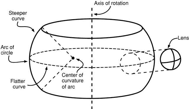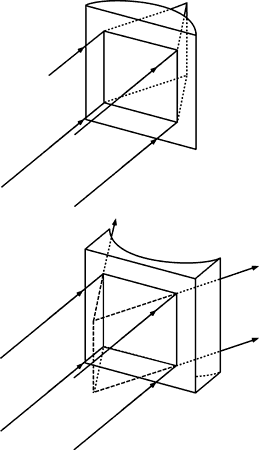 of an automobile tire, a doughnut, or a barrel. The cross-sectional shapes of a spherocylinder lens in its principal meridians are different (Fig. 10). Light is brought to a separate focus by each principal meridian.