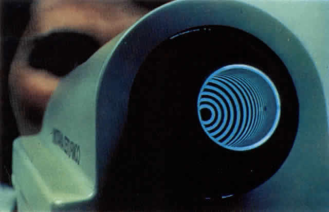 to the center of the pupil. Two peripheral targets also aid in focusing.