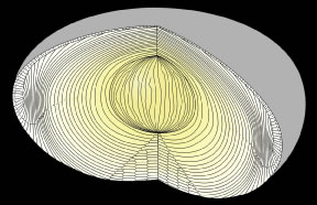 LENS AND FIBER SHAPE The anterior surface of a normal adult human lens is the equivalent of one half of a 15-degree spheroid, whereas its posterior surface is the equivalent of one half of a 30-degree spheroid (Fig. 10). Lens thickness is the measure of a lens from anterior to posterior poles along the visual axis, whereas lens width is the span of its equator perpendicular to the visual axis. Most fibers are hexagonal in cross section with two broad and four narrow faces (see Fig. 2). Fibers are arranged in growth shells, and/or radial cell columns, with their broad faces oriented parallel to the lens surface (see Fig. 3). The measure between broad faces constitutes fiber thickness, whereas the perpendicular distance defined by the furthest extent of the paired narrow faces constitutes fiber width. At the equator fiber thickness is approximately 1.0 to 1.5 μm, whereas fiber width measures on average 10.0 to 12.0 μm. LENS CORTEX AND NUCLEUS A cortex can be defined as the outer part or external layers of an internal organ, and a nucleus is defined as anything serving as the center of development or growth. Given the inside-out development and growth scheme of the lens, it is entirely appropriate to consider any vertebrate lens to consist of a cortex and a nucleus, each comprised of cortical and nuclear fibers, respectively (see Fig. 10). In any lens, by definition the primary fibers are the most internal fibers and are, thus, referred to as embryonic nuclear fibers. Similarly, the initial growth shells of secondary fibers comprise the initial external layers of the lens and are, thus, the original cortical fibers. However, because the lens grows throughout life, most secondary fibers become nuclear fibers on completion of the fiber maturation process. The types of nuclear fibers that secondary fibers become are determined by their time of origin (period of development, growth, or age). The embryonic nucleus is comprised solely of primary fibers. Primary fibers do not form sutures. Their long axis is oriented essentially parallel to the anteroposterior axis. Their average cross-sectional area is large with a high standard deviation. Thus, within any one equatorial cross section, embryonic nuclear fibers with large cross-sectional areas are seen adjacent to others with very small cross-sectional area.24,25 As a result, the embryonic nucleus is the only lens region where fibers are not organized into defined growth shells or radial cell columns. The fetal nucleus is comprised of all the secondary fibers formed until birth. Fetal nuclear fibers have more uniform cross-sectional measures and shape and have on average smaller cross sections than primary fibers.24 The organization of fetal nuclear fibers into defined radial cell columns evolvesover the period of fetal development. The initial shells of fetal nuclear fibers are characterized by irregularly shaped polygonal fibers (e.g., rhombic, pentagonal, hexagonal, etc.). As additional layers are formed, new fetal nuclear fibers are more uniform in shape (hexagonal), and, thus, they become arranged in radial cell columns. Because fetal nuclear fibers are secondary fibers, they are either straight or S-shaped, and their ends abut and overlap to form sutures. Therefore, the beginning of suture formation signals the beginning of the fetal nucleus. The fibers formed after birth and through sexual maturation are juvenile nuclear fibers.24 Because the length of time to complete the sexual maturation process is not constant, juvenile nuclear dimensions have broader boundaries compared with that of the fetal and embryonic nuclei. Juvenile nuclear fibers are consistently hexagonal with minimal cross-sectional size variation, as compared with fetal nuclear fibers. Juvenile nuclear fibers terminate in suture patterns that transition from three to six main branches (see Fig. 7) through infancy and from six to nine branches through adolescence (see Figs. 8 and 9). The adult lens nucleus is comprised of all the secondary fibers formed after sexual maturation minus the fibers of the cortex. All elongating fibers are superficial cortical fibers and all fully elongated fibers in the process of eliminating their organelles are intermediate cortical fibers. After eliminating their organelles, intermediate cortical fibers are transformed into deep cortical fibers as they alter their cytoplasm and plasma membrane. The boundary between the human cortex and nucleus can be visualized by both slit-lamp and darkfield biomicroscopy. When using white transmitted light, it is apparent that the human adult lens nucleus has a uniform yellow coloration clearly distinct from the colorless cortex24 (Fig. 11). Based on the diameter of the chromatic region, the average thickness of the cortex in adult human lenses (age range 49 to 73 years) is 1.13 mm plus or minus 0.15 mm (n = 10; unpublished data). The thickness of the lens cortex does not appear to change with age. LENS CELL HOMEOSTASIS The size of any tissue cell population is determined by both the rate at which new cells are added (the cell birth rate, KB) and the rate at which cells are lost (the cell loss rate, KL).26 Although KB can be readily assessed in most tissues by such methods as metaphase blocking,27 KL is more difficult to measure because of exfoliation, cell death, and migration. In simple terms, if KB is greater than KL, then the tissue is growing; if KB is less than KL, then the tissue is regressing; and finally, if KB = KL, then the tissue is in kinetic equilibrium. Throughout life the cumulative fiber total increases without a concomitant loss of the previously formed fibers. Thus, as regards the fiber mass, the lens grows throughout life because KB is greater than KL. From fetal development, and continuing throughout life, the lens produces more cortical fibers that eventually become nuclear fibers. In addition, because the rate of adult lens growth is very slow, the nucleus of any lens comprises a much