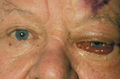 infections can progress (e.g., orbital cellulitis can proceed to abscess formation). Loss of vision can occur and may result from optic neuritis;from thromboembolic lesions to the vascular supply of the optic nerve, retina, or choroid; from rapid and sustained intraocular pressure elevation; or, rarely, from massive proptosis, which may mechanically distort the optic nerve.24 If light perception is lost, blindness may be irreversible.25 However, vision has been restored in some cases with emergent surgical treatment; thus, these patients must be diagnosed and managed expediently.100 Permanent motility defects and scarring from corneal exposure owing to proptosis and exposure have been reported, as have perforation of the globe resulting from rise in orbital and intraocular pressure with scleral rupture.102,103 Cerebral complications including cavernous sinus thrombosis, meningitis, carotid occlusion, epidural abscess, subdural abscess, brain abscess, and death have been reported.2,8,17 The use of anicoagulants in the treatment of cavernous sinus thrombosis is still controversial because of the risk of cerebral hemorrhage.104 However, a review of the literature suggests that anticoagulation is beneficial and that the risk of intracranial hemorrhage from it is rare if hemorrhagic sequelae of the thrombosis is ruled out prior to treatment with neuroimaging. The goal of the anticoagulation is an APTT of 1.5 to 2.104 |
