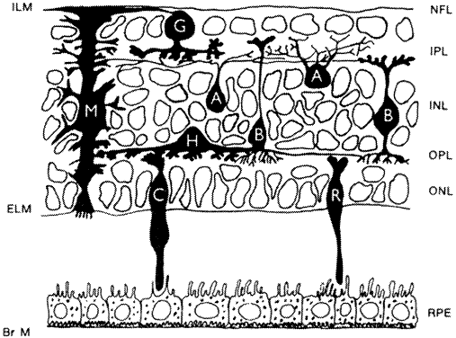 cells, bipolar cells, interplexiform cells, Müller cells, and