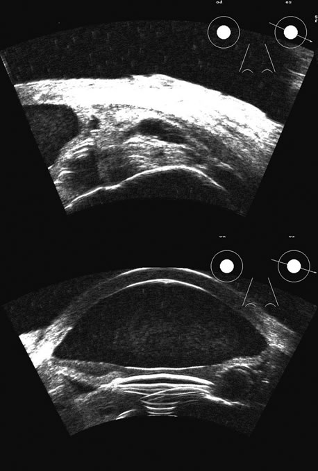 opacifications, ultrasound is necessary to identify and characterize vitreous