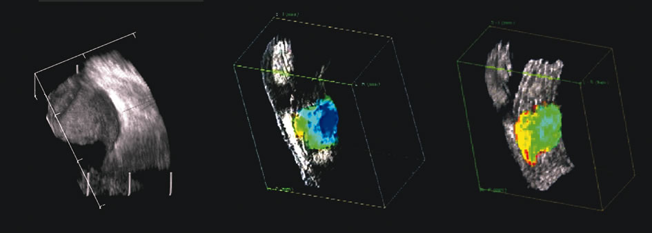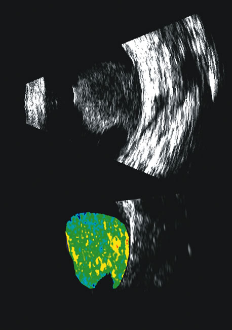excellent means of differentiating solid from cystic lesions, but differentiation