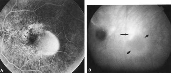 through all phases of the angiogram (Fig. 14). Like melanomas, speckled hyperfluorescence may sometimes be seen