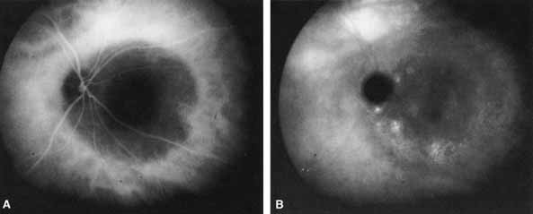 underlying normal choroidal pattern can occasionally be identified. Only
