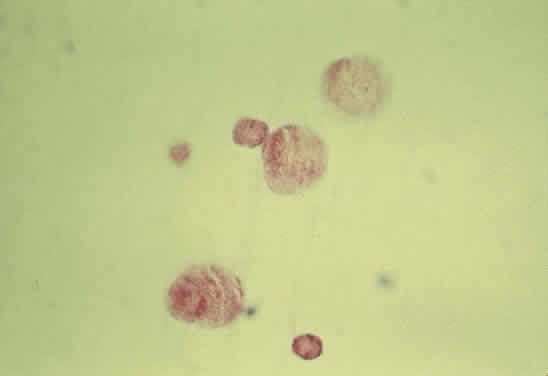 Clumps of black pigmentation may also be seen in chorioretinal scars. The lesion of quiescent toxoplasmosis may appear white centrally (bare sclera) but may be rimmed by clumps of black pigmentation, reflecting the response of the pigment epithelium to prior inflammation or trauma (see Figs. 19 and 37). Another example of pigment epithelial response to injury is seen in the ophthalmoscopic appearance of some photocoagulation spots. Whereas the heat generated by the laser may destroy the cells focally, pigment epithelium adjacent to the treatment zone frequently responds by hyperplasia. Destruction of the pigment epithelium may result in dispersion of melanin, which is taken up by other pigment epithelial cells or macrophages, thus imparting a black color to the edge of the injured zone. When the pigment epithelium responds by hyperplasia, it deposits basement membrane and frequently deposits collagen (metaplasia). Thus, pigment epithelial hyperplasia, often accompanied by metaplasia, may result in a lesion that is mildly elevated. The bone that appears in phthisical globes is presumed to be derived from metaplastic pigmented epithelium. Pigment epithelial melanin may accumulate within the retina, especially around retinal vessels (Fig. 50). Because the small retinal vessels branch frequently, the pigment appears to have the “bone-corpuscular” appearance typically seen in retinitis pigmentosa (Fig. 51) but also after blunt ocular trauma and intraocular inflammation. RED CHANGES IN THE FUNDUS Red lesions in the fundus indicate the presence of blood or abnormal blood vessels in an abnormal location. The blood may be intravascular, implying a vascular pathologic process, or extravascular, as in hemorrhage. Microaneurysms, such as those seen in diabetic retinopathy (Fig. 52), are reflective of vascular abnormality, which has been demonstrated histologically using trypsin-digestion techniques (Fig. 53). Notice that many microaneurysms measure less than 60 μm in diameter. Since the maximum resolving power of the direct ophthalmoscope is 60 μm, many of the small red dots observed in the fundus are not microaneurysms but microhemorrhages. In fact, alterations in vascular permeability are seen early in background diabetic retinopathy, and the microaneurysms frequently leak fluorescein during angiographic studies. Therefore, fluorescein angiography may be a more sensitive technique for the detection of microaneurysms than is direct fundus observation.18