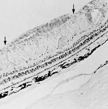 to the ampullae of the vortex veins. Whereas there are lesions of