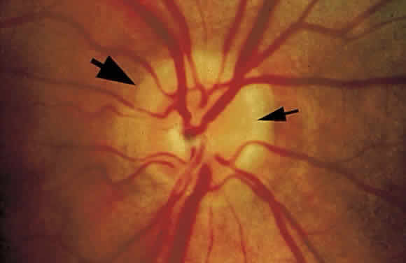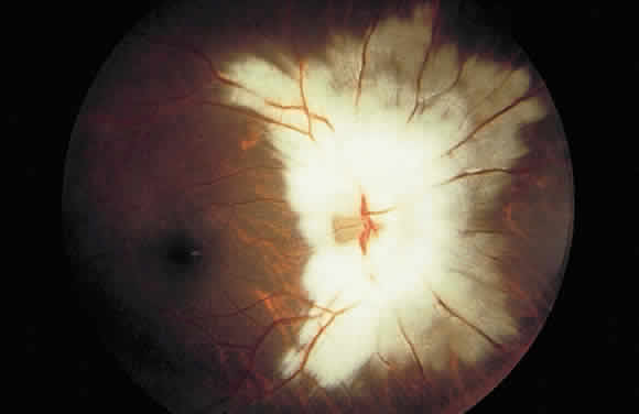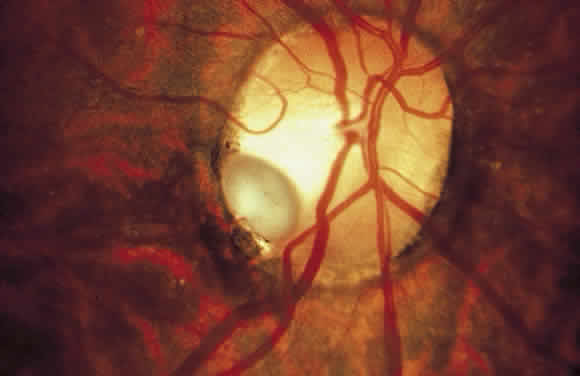 Normally, medullation of the optic nerve begins just before birth, proceeding anteriorly so that it reaches the lamina cribrosa at or shortly after birth. Thus, myelinated nerve fibers probably develop after birth and are not a true congenital anomaly but rather a postnatal development.9 |