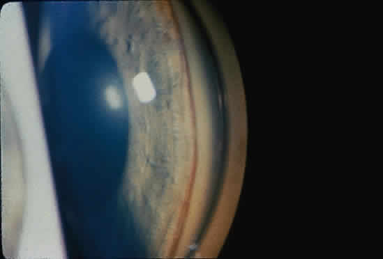 Less commonly, abrupt loss of vision may occur as a result of severe hypoperfusion of the retinal arterial system, which is marked by a cherry-red spot in the macula. In some cases, this hypoperfusion is caused by an embolus from a carotid atherosclerotic plaque that occludes the central retinal artery. In other cases, the perfusion pressure of the central retinal artery falls below that of the intraocular pressure because of an abnormally low arterial perfusion pressure caused by carotid artery occlusion and/or an abnormally high intraocular pressure due to neovascular glaucoma. Sometimes the cause of reduced vision is not immediately obvious. There is no cataract, no macular edema, and no signs of retinal ischemia, and the intraocular pressure is normal. In these eyes, fluorescein angiography usually reveals impaired choroidal perfusion, which is the probable cause of reduced vision. Color Doppler studies of the orbital vessels have correlated poor visual acuity with absence of blood flow in the posterior ciliary arteries,13 supporting the theory that choroidal hypoperfusion is the cause of poor vision in many patients. A history of amaurosis fugax may be elicited in up to 10% of patients.1 These episodes of transient loss of vision are caused by fibrin-platelet emboli originating from the atherosclerotic carotid plaques, which may temporarily occlude part of the retinal arterial circulation before being resorbed. In 10% of patients diagnosed with ocular ischemic syndrome, there is an absence of any visual symptoms.1 In some cases, the detection of ocular ischemic syndrome may be the first indication of the patient's underlying systemic problems (e.g., atherosclerosis, arterial hypertension, hypercholesterolemia), as well as the first indication of the patient's risk for cerebrovascular accident and myocardial infarction. Persons with ocular ischemic syndrome often report having difficulty seeing after being exposed to bright light.10 Typically, the patient will complain of prolonged difficulty in adjusting to a darker indoors when moving from a brightly lit outdoors. This subjective complaint can be more objectively tested with the photopic stress test, which measures the amount of time the patient requires to recover visual function after being exposed to a bright light source. The symptom of pain is found in approximately 40% of persons with ocular ischemic syndrome.1 Typically, the pain is described as a dull ache over the eye or brow. Ischemia to the anterior segment structures, or ocular angina, is thought to be the cause of this pain in some cases. In more advanced cases, an elevated intraocular pressure due to neovascular glaucoma may cause pain because of an increased perfusion gradient to the anterior segment causing ischemia, or because of rupture of a corneal epithelial microcyst of acute glaucoma. Ipsilateral dural ischemia has also been proposed as a cause of the pain. |