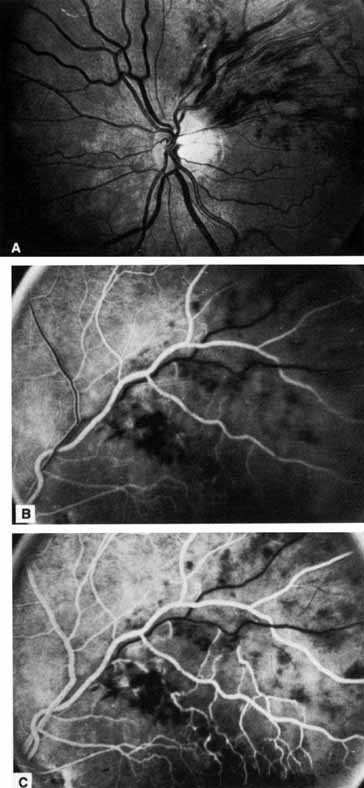 or the inferior retina (Fig. 7; see Fig. 11).75,178 This has also been referred to as a hemiretinal occlusion.362,363 In some eyes, the occlusion occurs in one of the dual trunks of the central