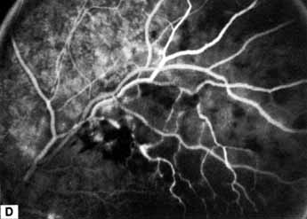 Thus the data on the study is very likely skewed toward a lack of treatment effect.164 In addition, of the eyes in the early-treatment group, three received only 500 to 600 spots (size not specified), even though the protocol called for at least 1,000 spots,89 and the median number of spots in the entire treatment group was only 1,203.89 Would more complete treatment have reduced the incidence of anterior segment ischemia in the early-treatment group, therefore producing a significant treatment effect? There was a significant correlation between the amount of nonperfused retina at baseline and the development of anterior segment neovascularization.89 Although only 16% of the eyes with 10 to 29 disc areas of capillary nonperfusion at baseline developed anterior segment neovascularization, 52% of the eyes with more than 75 disc areas of neovascularization developed neovascularization.89 Would eyes with the greatest number of risk factors (i.e., greater than 30 disc areas of nonperfusion, retinal hemorrhages greater than the standard photograph, duration of central retinal vein occlusion less than 1 month, and male sex) have benefited from prophylactic panretinal photocoagulation? Hayreh and associates163 conducted a prospective nonrandomized study of panretinal photocoagulation in ischemic central retinal vein occlusion. They found no statistically significant difference between the treated and untreated groups in the incidence of angle neovascularization, neovascular glaucoma, retinal or optic nerve neovascularization, vitreous hemorrhage, or visual acuity. The only significant finding was that fewer patients in the treated group had neovascularization of the iris compared with nontreated controls, but only if the panretinal photocoagulation was applied within the first 3 months after the onset of central retinal vein occlusion163 and panretinal photocoagulation resulted in a significant loss of the peripheral field. However, the patient selection for treatment in this study was not based on a random assignment, but the decision as to whether to perform laser or not was “left entirely to the patient,”320 and this may been a source of bias in terms of the results of the study.265 Once neovascularization in the anterior segment is detected, panretinal photocoagulation should be instituted promptly. This will often result in regression of the iris vessels and prevent complete angle closure; this is also true in patients with some increase in intraocular pressure but in whom the angle is not occluded for 360°. Once developed, neovascular glaucoma responds poorly to any type of treatment. Cycloplegics, topical pressure-lowering agents, carbonic anhydrase inhibitors, and corticosteroids, though failing to lower the intraocular pressure significantly, may make the patient more comfortable. Panretinal photocoagulation often cannot be applied in cases of advanced neovascular glaucoma in which the angle has been substantially occluded and the cornea may be too cloudy to allow treatment. Transscleral cyclocryotherapy or transscleral laser cyclodestruction, sometimes combined with 360° of transscleral panretinal cryoablation,165,166 has also been used to preserve the globe. In some cases in which visibility is poor and the angle is closed, we have had some success combining pars plana vitrectomy and endophotocoagulation with a drainage implant (e.g., Molteno, Ahmed) inserted through the pars plana. Macular edema, a frequent complication and cause of loss of visual acuity in patients with nonischemic central retinal vein occlusion, has been treated with macular grid photocoagulation.167 The rationale is that grid photocoagulation of the macula is effective in reducing macular edema in branch retinal vein occlusion168 and diabetes mellitus.169 The Central Retinal Vein Occlusion Study Group performed a randomized, prospective clinical trial on the effect of macular grid photocoagulation compared with no treatment on eyes with 20/50 or worse visual acuity due to macular edema with no capillary nonperfusion on fluorescein angiography.170 Although grid photocoagulation lessens macular edema both angiographically and clinically, there was no difference in visual acuity between the treated and untreated patients. For treated patients, there was a trend toward decreased visual acuity in patients older than 60 years and visual improvement in patients younger than this; this effect was not seen in untreated patients. Although this study suggests a possible benefit to visual acuity in younger patients with macular edema who are treated compared with untreated controls, the number of patients in this subgroup is too small for a statistically valid comparison of treated versus untreated eyes. Unfortunately, a study with an adequate number of patients has not been performed to determine whether photocoagulation would be of benefit for younger patients with macular edema in nonischemic central retinal vein occlusion. McAllister and Constable171 reported a surgical technique to create a chorioretinal anastomosis in patients with nonischemic central retinal vein occlusion. The technique is to rupture Bruch's membrane first in an area adjacent to the edge of a vein located at least three disc diameters from the optic disc with the argon laser; they then use a YAG laser to create a small opening in the sidewall of the adjacent vein. In their original report there was an average of 2.1 attempts to create an anastomosis, which was successful in only 42% of the patients in the first series171 and 54% in a subsequent report.332 In the first series, ischemic central vein occlusion did not develop in any of the patients in whom a successful anastomosis was produced, but it did develop in 31% of patients in whom such an anastomosis could not be created.171 All the patients with a successful anastomosis had an improvement in final visual acuity compared with pretreatment visual acuity. In the group of patients with an uns
