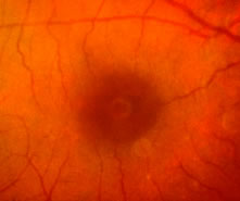 anatomic fovea and, primarily, the foveola of the eye. It may be associated