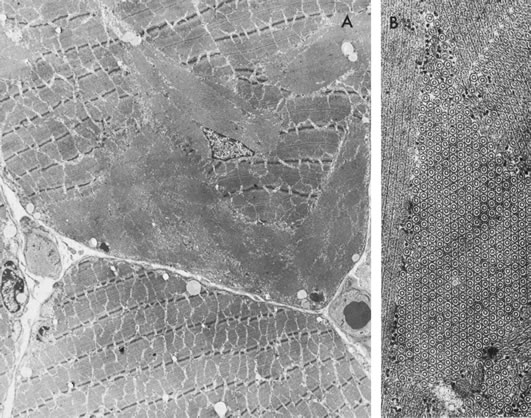 Almost invariably, the main ophthalmic features of high myopic astigmatism, posterior subcapsular cataracts, and typical retinal appearance are obvious to the ophthalmologist. One can be quite certain that if the patient does not have the typical fundus picture, as well as extreme hyperornithinemia, GA is not the correct diagnosis. The autosomal recessive inheritance pattern can usually be quickly ascertained with a brief family history asking about affected relatives and parental consanguinity (see Fig. 5), even before confirmatory laboratory biochemical and genetic testing is undertaken. Non-GA patients with extremely high myopia (usually more than –15 D) may occasionally have posterior polar, peripapillary, or peripheral clusters of round, full-thickness, chorioretinal atrophic lesions, often causing significant reduction in visual acuity.56 This, however, is not the pattern of the lesions seen in GA. An entity of “central gyrate atrophy” has been described,57 but this is probably equivalent to end-stage serpiginous choroidopathy rather than a separate inherited chorioretinopathy.58,59 Large areas of paving stone degeneration may superficially resemble GA, albeit on a much smaller scale. Paving stone degeneration is usually found in the inferior quadrants peripherally, whereas GA is not segmental and involves all 360 degrees of the fundus.60 Occasional reports of atypical GA appear in the literature.61–64 Review of these cases usually reveals either that the retina did not quite have the typical appearance of GA, myopia and cataracts were not present, and/or hyperornithinemia was absent. It is interesting to speculate as to why other disorders have retinal lesions similar in appearance to GA and whether or not some final common pathway to chorioretinal destruction exists, especially in cases where some similar systemic involvement may coexist, as in muscular dystrophy. However, labeling such cases with similar lesions as “atypical gyrate atrophy” can be misleading, especially to the majority of practitioners who have never encountered GA, and may lead to corruption of research efforts and reports by the inclusion of different etiologic disorders in supposedly homogeneous study groups.65 Metabolic Hyperornithinemia is not unique to GA.11,46 It was reported in two other conditions. In the late 1960s, Kekomaki and colleagues66 and Bickel and associates67 described two siblings who presented with failure to thrive, prolonged neonatal jaundice, atypical hepatic cirrhosis, renal tubular dysfunction, and mental retardation. Hyperornithinemia (about three times normal), renal glycosuria, generalized aminoaciduria, and mild hyperammonemia were present. Hepatic OAT levels were about one-sixth those of normal patients. Garnica and coworkers68 later confirmed these findings. Kekomaki and coworkers66 studied the enzyme kinetics of the residual OAT in the hepatocytes of one patient and found them to be normal, suggesting that the problem in this disorder is one of decreased enzyme synthesis or excessive degradation. Both siblings, at ages 15 and 9, were severely retarded, had normal ocular examinations, normal plasma ornithine, normal liver function tests, generalized aminoaciduria, elevated serum creatinine, and hypertension. The etiology of this syndrome remains unknown.8 The second disorder with associated hyperornithinemia is HHH syndrome, a rare autosomal recessive disorder that is about one-third as common as GA. HHH patients exhibit hyperornithinemia about one-half as elevated as that of GA patients, but there is considerable overlap. In the late 1960s to early 1970s, Shih and colleagues69,70 and later (1975) Gatfield and colleagues71 described patients presenting in infancy with feeding difficulty, mental retardation, and seizures, in which the biochemical triad of hyperornithinemia, hyperammonemia, and homocitrullinuria was observed. Abnormal hepatic mitochondria, not unlike those seen in GA, have been identified in this disease. The biochemical defect was hypothesized by Fell and coworkers72 to reside in defective transport of ornithine across the inner mitochondrial membrane into the mitochondrial matrix, and the biochemical and clinical evidence supports this hypothesis.8,73–82 The ornithine/citrulline transporter was identified and confirmed as the defect in the HHH syndrome.83–85 The gene has been labeled ORNT1 and mapped to 13q14.86 HHH patients may voluntarily restrict their protein intake to avoid having symptoms. The symptoms are thought to be due to hyperammonemia as they are similar to other hyperammonemia syndromes, and can be dramatically ameliorated with ornithine HC1, 0.5 to 1.0 mmol/kg/day dietary supplementation.78 The additional dietary ornithine is thought to elevate cytosolic ornithine levels, thereby driving it into the mitochondrial matrix, where it acts as the limiting substrate in the elimination of ammonia via the urea cycle. HHH syndrome, like GA, is inherited as an autosomal recessive disorder. Some patients do not respond to ornithine or arginine supplementation, suggesting heterogeneity in the mutation of the affected protein. Ocular examination has been normal in all patients examined.8 In neither of the above two metabolic syndromes have ocular abnormalities been noted. The senior author (SAA) repeatedly examined a currently 26-year-old patient and a teenage patient, both with HHH syndrome, as they underwent ornithine supplementation treatment over many years. Neither patient manifested any retinal or ERG changes (Steve A. Arshinoff, unpublished data, York Finch Eye Associates, Toronto, Ontario, Canada, 1985–2003). GA retinal lesions have not been observed in an infant. Hayasaka and coworkers19 noted that a 2-year-old patient with biochemical GA did not develop fundus lesions until age 4, and Stoppoloni and colleagues87 reported on a 13-year-old patient who had early fundus lesions. The senior author has followed a GA patient, who first pres