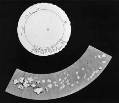 The retina is considerably smaller in diameter and in circumference at the ora serrata than at the equator (see Fig. 3). Consequently, conventional charts of the ocular fundus, which depict the ora serrata as having a diameter and circumference greater than that of the equator, are misleading (see Fig. 1). These charts should be considered only as diagrammatic projections in which the retina anterior to the equator is disproportionately expanded, that is, features of the peripheral retina are actually closer together than they appear in the conventional fundus diagram. Precise measurements of the optic disc diameter and the disc-to-fovea distance are also essential for correlation of topographic and clinical information. In the eye of the adult, the optic disc has an average vertical diameter of 1.86 ± 0.21 mm and an average horizontal diameter of 1.75 ± 0.19 mm. The center of the fovea is located an average distance of3.42 ± 0.34 mm temporal to and slightly below the temporal margin of the optic disc (Fig. 4). Inasmuch as the disc diameter (approximately 1.75 mm) is the standard for comparison in clinical examination of the retina, the distance from the equator to the ora serrata is approximately 3 disc diameters. The posterior margin of the peripheral retina is a line joining the points at which the vortex veins pass from the choroid to the sclera.3 This rather constant landmark is 3 mm (nearly 2 disc diameters) posterior to the equator of the eye. The anterior edge of the peripheral retina is theora serrata, an irregularly scalloped border; the irregularities are more pronounced nasally than temporally and have extreme individual variations in contour (Fig. 5). Dentate or toothlike processes extend anteriorly from the main contour of this bor-der, and bays or indentations extend posteriorly from the main contour of the ora serrata. At theora serrata, those projections of the retina toward the vitreous body are termed meridional folds. There is a concentration of dentate processes, ora bays, and meridional folds in the superior nasal quadrant and a progressive decrease in these morphologic features in the inferior nasal, superior temporal, and inferior temporal quadrants (Figs. 6 and 7). Although individual variations in ora serrata contour may be extreme, studies of adult human eyes demonstrate that both of a patient's eyes are remarkably similar and that statistically, the “average” ora serrata has 16 dentate processes, 1 large or giant dentate process, 10 ora bays, and 1 double ora bay.1,2 In clinical practice, morphologic variations in the contour of the ora serrata are most common in the superior nasal quadrant, least common in the inferior temporal quadrant, and subject to a wide range of individual irregularities. Thus, the ora serrata is depicted on the conventional ocular fundus diagram as a scalloped line straddling the middle circle on the chart and reflecting variations in the structure that are pertinent to the localization of clinically significant abnormalities. Coursing through the peripheral retina are arterioles and venules that travel separately and are evenly distributed. Arterioles are smaller in caliber and lighter in color than venules; however, to distinguish the arterioles and venules it is usually necessary to trace the vessels posteriorly to an area where accurate differentiation is possible. As vessels extend anteriorly in the peripheral retina their size decreases; they occasionally may travel nearly parallel to the ora serrata and usually become invisible approximately 2 mm posterior to the ora serrata. Externally, the retina is in contact with the retinal pigment epithelium and the choroid. Separation of the weak bond between the sensory retina and the retinal pigment epithelium is termed retinal detachment. Internally, the retina contacts the vitreous body. This transparent, gel-like tissue fills two thirds of the globe, has a volume of 4 to 5 ml in adults, and is in contact with the optic disc, ciliary body, zonule, and lens. Although united to some extent with each of these structures in the normal eye of the young adult, the vitreous is joined most firmly with surrounding structures at the vitreous base, a circular band extending anteriorly and posteriorly from the ora serrata. The anterior portion of the vitreous base is the area between the ora serrata and the origin of the anterior hyaloid membrane. In adult eyes stud-ied at autopsy, the anterior vitreous base usually conformed to the contour of the ora serrata and measured 0.26 ± 0.16 mm in the nasal horizontal meridian and 1.32 ± 0.29 mm in the temporal horizontal meridian.1,2 The posterior portion of the vitreous base is the zone of strong vitreoretinal attachment that extends posterior to the ora serrata; that is, it is the area between the ora serrata and the most anterior extent to which the vitreous may be detached without severely disrupting the inner retinal layers. In postmortem studies of adult eyes, the posterior vitreous base presented a relatively smooth posterior border; it measured 3.03 ± 0.84 mm in the nasal horizontal meridian and 1.81 ± 0.64 mm in the temporal horizontal meridian.4 The vitreous base is a major factor in the localization and clinical course of developmental variations, degenerations, and diseases. It involves the full circumference of the peripheral fundus, measures approximately 3.2 mm (nearly two disc diameters) anteroposteriorly, generally reflects the anterior contour of the ora serrata, presents a relatively smooth posterior border, extends onto the peripheral retina for a greater distance nasally than temporally, and usually is associated with visibly increased pigmentation in the corresponding portion of the retinal and ciliary body pigment epithelium. These findings are characteristic of the peripheral retina and adjacent structures in the normal eye of the young adult; the peripheral retina actually undergoes changes throughout life. The periph