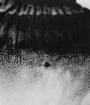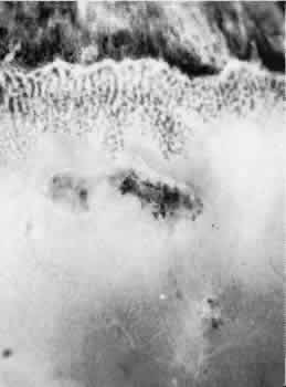 Paving-stone degeneration is associated with sharply circumscribed retinal thinning due to loss of the rods and cones and external limiting membrane, absence of the pigment epithelium, adherence of the retina to Bruch's membrane, and alteration of the choriocapillaris (Fig. 26). The hyperpigmented cuffs and septa consist of proliferated pigment epithelial cells. Paving-stone degeneration is present in 22% of adult patients, is bilateral in 38% of these, and thus is evident in 17% of adult eyes (see Table 3). Prevalence increases markedly with advancing age. In distribution, there is a preference for the inferior temporal and inferior nasal quadrants, with more than half of the lesions located in the inferior retina between the 5- and 7-o'clock positions. Lesions are most numerous immediately posterior to the ora serrata; they rarely extend posterior to the equator. Paving-stone degeneration does not predispose to retinal breaks or to retinal detachment and thus does not warrant any form of treatment. However, if a retinal detachment from some other cause involves an area of paving-stone degeneration, the retina may be torn at the site of the chorioretinal adherence. The resultant retinal breaks are often small, irregular in shape, inconspicuous, and best detected with contact lens biomicroscopy. PERIPHERAL TAPETOCHOROIDAL DEGENERATION With advancing age, the peripheral fundus usually develops a granular appearance, due to irregularity of the retinal pigment epithelium. Peripheral tapetochoroidal degeneration, a pronounced degree of this alteration, presents as a diffusely depigmented circumferential band that extends from the ora serrata to the equator. The anterior border is irregular because of splotchy pigmentation that remains within the area of the vitreous base, but the posterior border is usually smooth and well defined.11 Peripheral tapetochoroidal degeneration is associated with degeneration and loss of pigment granules in the retinal pigment epithelium, some loss of photoreceptor cells, diffuse thickening of Bruch's membrane, and a diminution of capillaries in the choriocapillaris. Although minor degrees of degeneration of the retinal pigment epithelium are common in older patients, extensive alterations that meet the criteria of peripheral tapetochoroidal degeneration are present in 20% of patients over 40 years of age, are bilateral in all cases, and thus are present in 20% of eyes in this group (see Table 3). This age-related process does not predispose to retinal tear formation and requires no treatment. RETINAL HOLE Most retinal holes (76%) are secondary to lattice degeneration.20 Primary retinal holes, unrelated to lattice degeneration or other identifiable disorders, are rounded, full-thickness retinal breaks without a flap or a free operculum (Fig. 27). Usually located anteriorly within the area of the vitreous base, the holes have smooth margins; the adjacent retina usually appears normal; proliferative reactions are absent; and vitreous attachments are not unusual.11 Microsections of retinal holes confirm the complete retinal discontinuity and the smooth, rounded margins (Fig. 28). There is minimal reactive gliosis; no significant alteration is found in the adjacent vitreous body or in the pigment epithelium.