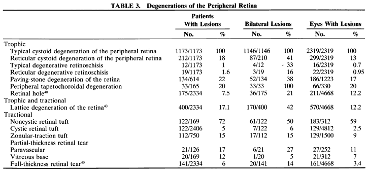 TROPHIC AND TRACTIONAL PERIPHERAL RETINAL DEGENERATIONS | ||||||