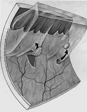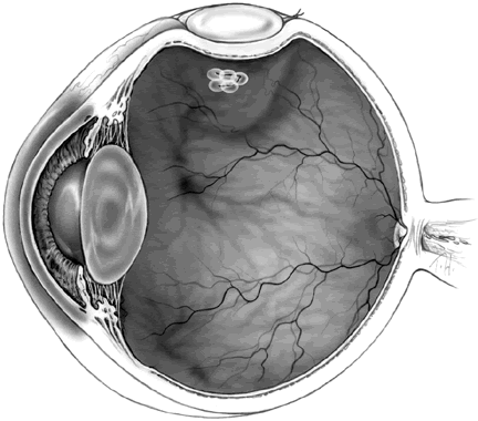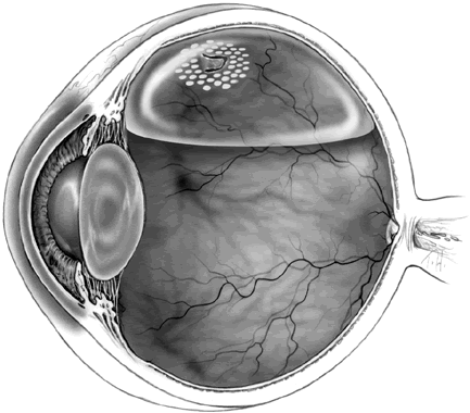 LINCOFF BALLOON Another technique for RRD repair is the temporary use of an inflatable balloon to indent the sclera, choroid, and RPE. The principles of this procedure are analogous to those of scleral buckling. All of the retinal breaks are localized and treated with cryotherapy. Alternatively, laser photocoagulation may be applied instead of cryotherapy; however, as is the case in pneumatic retinopexy, this must be applied in the postoperative period once the retina is reattached. Rather than permanently attaching an inert buckle to the eye, an inflatable balloon is placed in the area of the causative retinal break(s) through a small conjunctival and Tenon's incision and then inflated. After several days, the balloon is deflated and removed.127 This technique avoids some of the long-term complications of scleral buckles such as infection, extrusion, refractive change, and motility disturbances. Nonetheless, the procedure is useful only for detachments with a single break or a closely spaced cluster of breaks, and the single-operation success rate is somewhat lower than for scleral buckling techniques.127–129 This technique tends to be cumbersome for the patient and is not widely used at this time. PRIMARY VITRECTOMY Another useful approach to RRD repair is a primary pars plana vitrectomy. This technique involves internal drainage of the subretinal fluid, a gas-fluid exchange, and laser photocoagulation or cryotherapy of the reattached retina.130,131 Because the vitreous is removed, vitreous traction on retinal breaks is eliminated during surgery. In cases with significant vitreous hemorrhage, this technique allows visualization and treatment of the retinal breaks, which would not be approachable with other techniques. Nonetheless, this technique is generally reserved for more complicated detachments. LASER PHOTOCOAGULATION If a patient is unwilling or physically unable to tolerate a surgical intervention, laser photocoagulation of the attached retina surrounding an RRD may be used to wall off the detachment. Nonetheless, this technique applies to a limited number of patients. Recently, this method has gained popularity in the setting of limited retinal detachments from quiescent cytomegalovirus retinitis.132,133 |