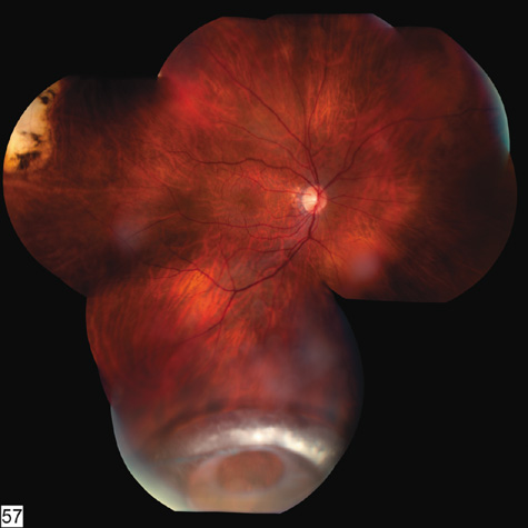 The Role of Head Trauma in Retinal Tears Ophthalmologists have long argued about whether or not trauma to the head but not directly to the eye or orbit can cause a retinal tear. Doden and Stark83 showed that it probably does not, at least in normal eyes. He examined 247 patients who had received a severe blow to the head, and none had a retinal tear. However, the authors have seen acute posterior vitreous detachment (PVD) and retinal tears immediately after a blow to the head in patients who were predisposed to retinal tears because of high myopia, lattice degeneration, or other abnormalities RETINAL AND VITREOUS HEMORRHAGE If the retina is torn, blood vessels that bridge the tears may bleed into the vitreous. Vitreous hemorrhage can also result from acute PVD and avulsion of superficial retinal vessels. A third possible mechanism is rupture of the ciliary body. In many cases the source of the bleeding is never found. Ultrasound examination is indicated if the posterior segment is obscured by hemorrhage. Ultrasound can reveal a retinal tear or detachment, choroidal detachment, posterior vitreous detachment, or occult ruptured globe. Bed rest with head elevation encourages the blood to settle and improves the view to the fundus on follow-up examinations. RETINAL DETACHMENT Because men and boys are most likely to be engaged in fighting or contact sports, it is not surprising that at least three-fourths of the patients with traumatic retinal detachment are men or boys,84 and that blunt trauma is the leading cause of retinal detachment in children and adolescents.85 Because the affected patients have a formed vitreous, traumatic retinal detachments typically progress slowly unless a giant tear is present. In some patients, the trauma occurs months or years before the detachment is diagnosed. Demarcation lines, atrophy of the underlying pigment epithelium, subretinal precipitates, retinal macrocysts, and extensive vitreous “tobacco dust” are all commonly seen (Fig. 18). Proliferative vitreoretinopathy is uncommon, so the prognosis for reattachment is excellent, provided, of course, that all breaks are found. In 87% of traumatic retinal detachments, the causative tear is found at the vitreous base. Superonasal breaks at the anterior vitreous base are commonly overlooked. Because many traumatic retinal breaks cause subsequent retinal detachment, they should all be treated with laser or cryotherapy.