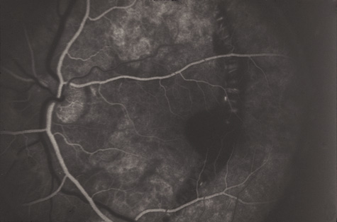 Similar to many conditions that damage Bruch's membrane, choroidal ruptures can, months to years later, be complicated by development of a choroidal neovascular membrane, with serous or hemorrhagic retinal detachment and loss of central vision (Fig. 23).87–89 They usually respond well to laser therapy. Also, studies have demonstrated that subfoveal choroidal neovascular membranes from etiologies other than age-related macular degeneration can benefit from photodynamic therapy.90,91