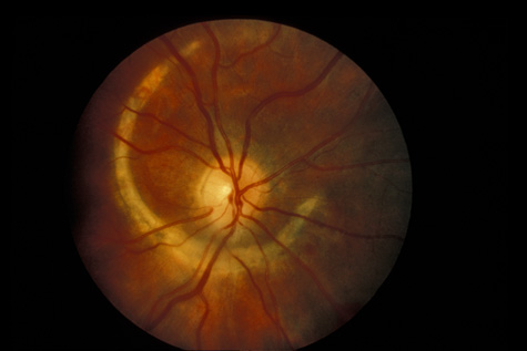 Initially, a choroidal rupture may be obscured by a subretinal hemorrhage caused by tearing of the choriocapillaris. Later, after the blood has resorbed, a white curvilinear streak concentric to the optic disc is seen. Only rarely is a rupture oriented radially with respect to the optic disk. Most are temporal to the disc and single, although nasal and multiple ruptures can also occur (Fig. 21).