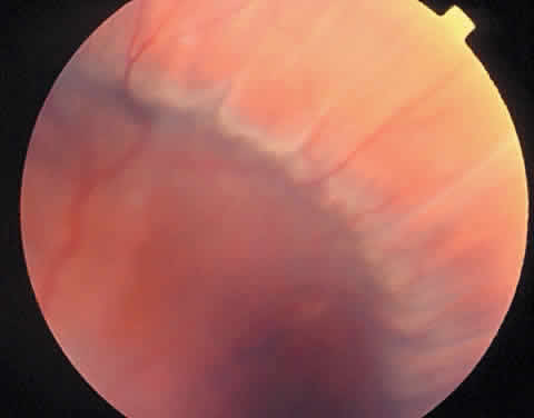 RPE. The overlying retina may show some minor degree of wrinkling, but