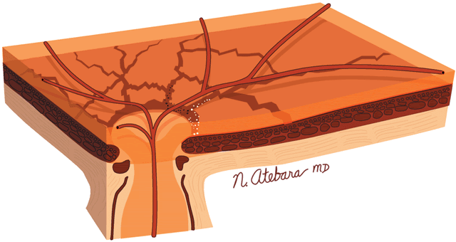 TREATMENT Because angioid streaks are usually not visually significant, observation is often warranted. Patients with angioid streaks should be advised to avoid activities that increase the likelihood of receiving a blow to the eye because of their increased risk of subretinal hemorrhage. The role of thermal laser photocoagulation in the management of choroidal neovascularization associated with angioid streaks is controversial. Although initial reports of photocoagulation were disappointing, more recent reports have supported laser photocoagulation as a means of closing the choroidal neovascularization and stabilizing vision.72–75 Close follow-up after thermal laser photocoagulation is warranted, because recurrent choroidal neovascularization has been reported as high as 77%.75 Submacular surgery for choroidal neovascularization related to angioid streaks has produced generally disappointing results.76,77 It appears that the diffuse nature of the calcification of Bruch's membrane often leads to extraction of the RPE along with the choroidal neovascular membrane during surgery. The loss of RPE leads to photoreceptor atrophy and loss of central visual acuity. Photodynamic therapy, although unproven, may be the most promising modality of treatment at present. Early studies using verteporfin for treatment of choroidal neovascularization in angioid streaks have shown at least short-term cessation of fluorescein leakage from CNV without loss of vision in a small number of patients.78 Larger randomized clinical trials are under way to study whether verteporfin photodynamic therapy is beneficial for subfoveal CNV in angioid streaks and other similarly challenging ophthalmic conditions. |