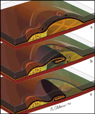 only as a secondary effect of distortion of the underlying choroidal-Bruch's-RPE