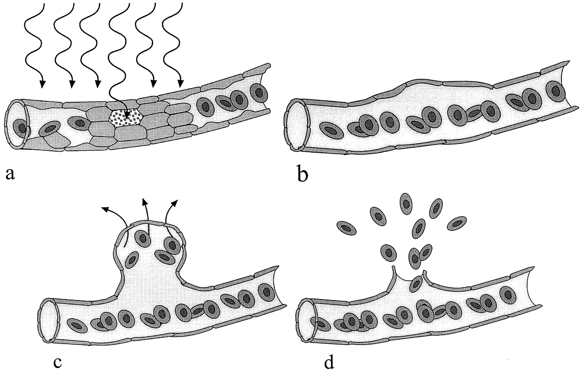 to radiation damage,5,7 the blood vessels within them are not.8 Ionizing radiation interrupts