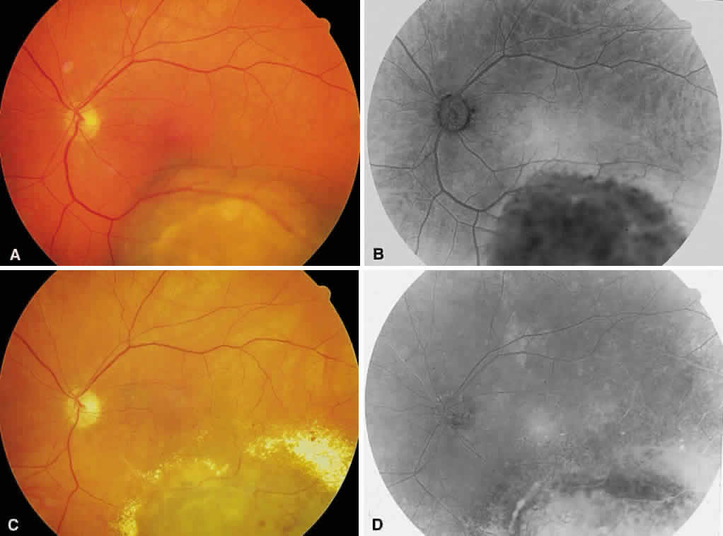 Radiation retinopathy can be confused with a variety of entities, including diabetic retinopathy, hypertensive retinopathy, retinal vein occlusions, retinal arterial occlusions, systemic vasculitides, acquired telangiectasia, and human immunodeficiency virus retinopathy.4,10 A careful history of any form of radiation therapy to the eye, ocular adnexa, orbit, or head usually helps with the diagnosis. Common modalities of radiation treatment associated with radiation retinopathy include treatment for thyroid orbitopathy,28 pituitary and parasellar tumors,29 nasopharyngeal carcinoma,30 and intraocular tumors. Patients may not give a history of radiation for nonocular tumors unless specifically asked.2 |