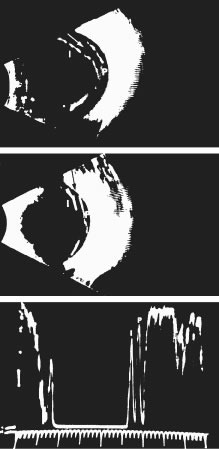 Optical Coherence Tomography Introduced in 1991, optical coherence tomography (OCT) is a new technique for high-resolution cross-sectional imaging of ocular structure.178 OCT is based on the principle of low-coherence interferometry, in which the distances between and sizes of structures in the eye are determined by measuring the “echo” time it takes for light to be backscattered from the different structures at various axial distances. The resolution of all echo-based instrumentation (such as ultrasound and OCT) is based on the ratio of the speed of the incident wave to that of the reflected wave. As described previously, clinical ultrasonography is performed with a frequency of approximately 10 MHz and has a 150 μm resolution. Although recently introduced ultrasound biomicroscopy has increased the frequency (up to 100 MHz), and, thus, has a spatial resolution of 20 microns, penetration into the eye is no more than 4 to 5 mm. Light-based devices, such as the OCT, use an incident wavelength of 800 nm and have increased axial resolution to 10 μm, providing excellent imaging of retinal architecture, although vitreous applications are less useful. The limitations of OCT include the inability to obtain high-quality images through media opacities such as dense cataract or vitreous hemorrhage. The use of OCT is also limited to cooperative patients who are able to maintain fixation for the full acquisition time of 2.5 seconds per section. Thus, to date OCT has primarily been used to image, and to some extent quantitate, retinal laminar structure. Some vitreous applications have been useful, especially those that involve imaging the vitreomacular interface in patients with macular holes.179 However, the exact nature and molecular composition of these preretinal tissue planes cannot be definitively deduced using OCT, and little information can be garnered about structures within the vitreous body. Spectroscopy NUCLEAR MAGNETIC RESONANCE SPECTROSCOPY. The nuclear magnetic resonance (NMR) phenomenon is based on the fact that, when placed in a magnetic field, magnetic nuclei such as water protons tend to orient their magnetic vectors along the direction of the magnetic field. The time constant for this orientation, known as the longitudinal relaxation time T1, reflects the thermal interactions of protons with their molecular environment. Magnetic vectors that have previously been induced to be in phase with each other undergo a dephasing relaxation process that is measured by the transverse relaxation time T2. It is the transverse relaxation time T2 that reflects inhomogeneities within the population of protons. Protons oriented by a magnetic field absorb radio waves of the appropriate frequency to induce transactions between their two orientations. This absorption is the basis of the NMR signal used to index relaxation times. Relaxation times in biologic tissues vary with the concentration and mobility of water within the tissue. Because the latter is influenced by the interaction of water molecules with macromolecules in the tissue, this noninvasive measure can assess the gel to liquid transformation that occurs in vitreous during aging180 and in disease states, such as diabetic vitreopathy.50,181 These considerations led Aguayo et al182 to use NMR in studying the effects of pharmacologic vitreolysis153 of bovine and human vitreous specimens and intact bovine eyes in vitro. Collagenase induced measurable vitreous liquefaction, more so than hyaluronidase. Thus, this noninvasive method could be used to evaluate age and disease-induced synchisis (liquefaction) of the vitreous body, although it is not clear that this technique would adequately evaluate the vitreoretinal interface. There have, curiously, been few recent studies that have employed NMR spectroscopy in research or clinical applications on vitreous. RAMAN SPECTROSCOPY. This form of spectroscopy was first described in 1928 by C.V. Raman in India. Raman spectroscopy is an inelastic light scattering technique wherein the vibrational mode of molecules in the study specimen absorb energy from incident photons, causing a downward frequency shift, which is called the Raman shift. Because the signal is relatively weak, current techniques employ laser-induced stimulation with gradual increases in the wavelength of the stimulating laser, to detect the points at which the Raman signal becomes apparent as peaks superimposed on the broad background fluorescence. The wavelengths at which these peaks are elicited are characteristic of the chemical bonds, such as aliphatic C-H (2939 cm-1), water O-H (3350 cm-1), and C-C and C-H stretching vibrations in π-conjugated and aromatic molecules (1604 cm-1 and 3057 cm-1). To date, most applications of this technique in the eye have been for analysis of lens structure and pathology.183 The use of near-infrared (IR) excitation wavelengths is particularly effective in the lens, because these wavelengths have better penetration through cataractous lenses. Studies184 of samples of excised human vitreous obtained during surgery used near-IR excitation at 1064 nm provided by a diode-pumped neodymium:yttrium-aluminum-garnet (Nd:YAG) CW laser with a diameter of 0.1 mm and a power setting of 300 mW. Back-scattering geometry with an optical lens collected scattered light that was passed through a Rayleigh light rejection filter into a spectrophotometer. The results showed that this technique was able to detect peaks at 1604 cm-1 and 3057 cm-1 in vitreous of diabetic patients that were not present in controls. Further research and development is needed to reliably interpret such results and refine the methodology for noninvasive use in situ. Although this has already been achieved in the lens, it is not clear that this will be possible for vitreous applications. Dynamic Light Scattering Dynamic light scattering (DLS) is an established laboratory technique to measure average size (or size distribution) of microscopic p