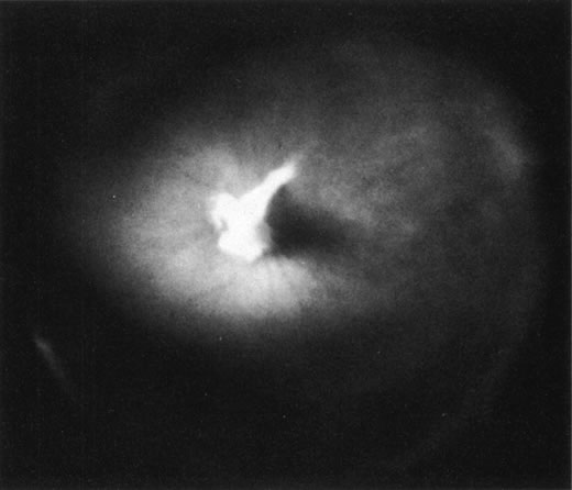RETINITIS PIGMENTOSA In 1949, Berliner228 made very detailed descriptions of the vitreous changes in retinitis pigmentosa as seen by slit lamp biomicroscopy. The appearance of particulate structures is believed to result from melanin pigment granules embedded in the matrix of vitreous collagen fibrils.229 Cells that are found in retinitis pigmentosa vitreous include uveal melanocytes230 and macrophages derived from blood monocytes that gain access by way of abnormal retinal vessels, migrated retinal pigment epithelial cells, or hyalocytes. In favor of the hyalocyte origin are the histologic features of invaginated nuclei and long, slender pseudopodia.229 Newsome and Michels231 recently employed monoclonal antibody techniques to identify the cells in retinitis pigmentosa vitreous and found T helper and suppressor cells, activated T cells, and some B cells. SYNCHYSIS SCINTILLANS Synchysis scintillans, a condition of vitreous opacification, is related to any pathologic process that results in chronic vitreous hemorrhage. The vitreous opacities are noted when frank hemorrhage is no longer present and appear as flat, golden brown, refractile bodies that are freely mobile. They are associated with liquid vitreous, so they settle to the most dependent portion of the vitreous body when eye movement stops. The vitreous surrounding these opacities is degenerated and liquefied, leading to collagen displacement peripherally.71 Chemical studies have demonstrated the presence of cholesterol crystals in these opacities, and the condition is sometimes referred to as cholesterolosis bulbi.232 Free hemoglobin spherules in the vitreous have also been reported.233 ASTEROID HYALOSIS Asteroid hyalosis is a generally benign condition characterized by small white or yellow-white spheric or disc-shaped opacities throughout the vitreous body. The prevalence of this condition in the general population is about 0.042% to 0.5%, affecting all races, but with a male-to-female ratio of 2:1. Curiously, asteroid hyalosis is unilateral in over 75% of cases. Asteroid bodies are intimately associated with the vitreous gel and move with typical vitreous displacement during eye movement. This fact led Rodman and colleagues234 to suggest that there was a relationship to vitreous fibril degeneration. However, posterior vitreous detachment, either complete or partial, occurs less frequently in asteroid hyalosis than in age-matched controls.235 Histologic studies demonstrated a crystalline appearance to asteroid bodies, with a positive staining pattern to fat and acid mucopolysaccharide stains that was unaffected by hyaluronidase pretreatment.234 Electron diffraction studies showed the presence of calcium oxalate monohydrate and calcium hydroxyphosphate.236 Streeten237 performed ultrastructural studies and found intertwined ribbons of multilaminar membranes with a 6-nm periodicity that she interpreted as characteristic of complex lipids, especially phospholipids, lying in a homogeneous background matrix. In these investigations, energy-dispersive x-ray analysis showed calcium and phosphorus to be the main elements in asteroid bodies. Electron diffraction structural analysis demonstrated calcium hydroxyapatite and possibly other forms of calcium phosphate crystals. The etiology of asteroid hyalosis is not clearly understood. There have been reports suggesting an association between asteroid hyalosis and diabetes mellitus.238,239 Others dispute such an association.240,241 Asteroid hyalosis appears to be associated with certain pigmentary retinal degenerations as reported by Sebag and coworkers,242 although it is not known whether this is related to the presence of diabetes mellitus in these patients. Yu and Blumenthal243 proposed that asteroid hyalosis resulted from aging collagen, whereas other studies suggested that asteroid formation is preceded by depolymerization of hyaluronic acid.244 AMYLOIDOSIS Amyloidosis may result in the deposition of opacities in the vitreous of one or both eyes. Bilateral involvement may be an early manifestation of the dominant form of familial amyloidosis, although rare cases of vitreous involvement in nonfamilial forms have been reported.245 The opacities first appear in the vitreous cortex adjacent to retinal blood vessels and later appear in the anterior vitreous.246 Initially, the opacities are granular, with wispy fringes, and later take on a “glass wool” appearance.71 When the opacities form strands, they appear to attach to the retina and the posterior aspect of the lens by thick footplates.237 Following PVD, the posterior vitreous cortex is observed to have thick, linear opacities that follow the course of the retinal vessels. The opacities seem to aggregate by “seeding” on vitreous fibrils and along the posterior vitreous cortex.237 When visually significant, the opacified vitreous can be safely removed surgically. Specimens that have been studied histopathologically have contained starlike structures with dense, fibrillar centers. The amyloid fibrils are 5 to 10 nm in diameter and are distinguished from the 10- to 15-nm vitreous fibrils by stains for amyloid and by the fact that the vitreous fibrils are very straight and long.237 Electron microscopic studies confirmed the presence of amyloid, and immunocytochemical studies247 identified the major amyloid constituent as a protein resembling prealbumin. Streeten237 considered that hyalocytes could perform the role of macrophage processing of the amyloid protein before its polymerization. This may further explain why the opacities initially appear at the posterior vitreous cortex, where hyalocytes reside (see Chapter 38 in this volume). NEOPLASIA Cell invasion of the vitreous may occur as a result of intraocular neoplasia as well as ocular involvement in extraocular neoplasia. In retinoblastoma, especially the endophytic form, cells traverse the vitreous and adhere to basal laminae at various sites. Occasionally, clumps of retinoblasto