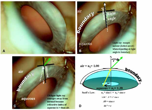UNDERSTAND WHY THE ANTERIOR CHAMBER ANGLE CANNOT BE SEEN ROUTINELY: GEOMETRIC OPTICS AND SNELL'S LAW ARE THE ANSWER |