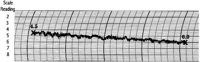 by a test called tonography. Tonography is a clinical test of aqueous humor dynamics that was introduced by W. Morton Grant in 1950.32 Grant showed that analysis of a continuous recording from an electronic Schiøtz tonometer yielded estimates of aqueous outflow and rate of aqueous flow. The principle of the test may be traced to the massage effect, whereby pressure on the eye leads to a softening of the globe due to an increased outflow of aqueous humor induced by the higher pressure.33 Grant recorded the output of an electronic tonometer on a strip-chart recorder and showed that this data combined with the tonometer calibration of Friedenwald could be used to provide a quantitative expression relating the outflow of aqueous humor to the driving pressure. Grant called this value “the coefficient of aqueous outflow facility”(C). The coefficient of aqueous outflow facility is calculated from Grant's formula: Δ VT (Ptav - P0) In this equation, C is equal to the change in ocular volume (ΔV) occurring over the time interval T as a result of the difference between the average pressure during tonography (Ptav) and the resting pressure in the eye before application of the tonometer (P0). The units for the outflow facility are given as μL/minute/mmHg. C can also be considered as the reciprocal of the expression for resistance to flow, which is written as a change in pressure over a change in flow rate. Linner34 found that episcleral venous pressure rises an average of 1.25 mmHg during Schiøtz tonometry; therefore, the formula is usually corrected by adding 1.25 to P0. Because all the parameters of the formula except time derive from the calibration data for the Schiøtz tonometer, the accuracy of the facility calculation absolutely depends on the accuracy of the calibration data. In addition to the uncertainties inherent in the calibration of the Schiøtz tonometer,35 there are other potential sources for error in the calculation of facility. For example, the calculation assumes that the pressure change that results from placing the tonometer on the eye does not induce a change in the rate of production of aqueous humor or in the resistance of the outflow channels. There is evidence, however, that increased IOP results in some decrease in aqueous formation. In standard tonography, this effect is indistinguishable from true outflow facility and has therefore been called “pseudofacility.”36 Furthermore, there is laboratory evidence that increased IOP causes some increase in the resistance to aqueous outflow.37 In this way, by raising the pressure, tonography alters the parameter it seeks to measure. Although the theoretic foundations of the test deserve careful consideration, the practical question is not whether the various assumptions are correct but whether the errors they may introduce are large enough to affect the validity and clinical use of the test. The test has proved to be of clinical and research value, yielding results that are internally consistent,38 reproducible, and in good agreement with determinations of aqueous flow and outflow resistance made by other methods.39,40 Tonography has contributed greatly to our knowledge of the mechanism of glaucoma and its treatment and remains the most simple and practical approach for clinical measurement of aqueous outflow facility—an important determinant of IOP. Accurate Schiøtz tonometry requires a relaxed and cooperative patient and a skilled and dexterous operator. By prolonging the measurement of Schiøtz pressure to 4 minutes, tonography demands more of both patient and operator. It is important to maintain an atmosphere of quiet and calm. The test must be performed in a room without ringing telephones and interruptions from other patients and personnel. In addition, the mechanical part of the instrument requires careful cleaning and the electronics require regular calibration. The output of the electronic tonometer is traced on a strip chart. A good test shows a gentle downward trend in the scale reading, with fine oscillations of the ocular pulse superimposed on the tracing (Fig. 9). Scale readings at 0 and 4 minutes are read from a smooth pencil line, which is drawn through the tracing to make a good visual approximation of the average slope. When the tracing is a good one, this average slope is easy to recognize and draw. If the tracing is of poor quality, the approximation is difficult to draw and should be a signal to the examiner that the record is probably not reliable. Having determined the values for the initial and the 4-minute readings, the value for C can be determined either by using Grant's tables and Friedenwald's calibration data in Grant's equation or by determining the value from composite tables that have been created for this purpose. The most complete source for such tables is the appendix of Becker and Shaffer's41 textbook on glaucoma. Tonography is primarily used in settings where research is ongoing into the mechanisms of glaucoma and its treatment. It is not a test that is frequently conducted in an individual practitioner's office, although many find the test useful in the management of individual cases. The value of tonography may be considered in the framework of past contributions, present uses, and future potential.42 When the test was first introduced, there was general uncertainty regarding the derangement of aqueous dynamics that produced glaucoma—simply stated, that increased IOP could result from a hypersecretion of aqueous humor, increased resistance to its egress, or a combination of both factors. With a sensitive method of determining fluorescein turnover in the anterior chamber, Goldmann showed that glaucoma patients were not different from normal patients in the rate of aqueous flow. He concluded that open-angle glaucoma resulted from increased resistance to aqueous outflow. This important information was derived from relatively complex methods—methods that were not practical fo